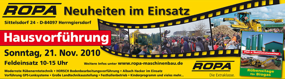 Super organisiert, mit Shuttlebus vom Parkplatz zum Werksgelände, schöne Vorführungen von der neuen Euromaus, dem Eurotiger, Albach Holzhäcksler (gigantisch, was der schluckt), "einlagern" von Zuckerrüben als Biogassubstrat für die neue Hauseigene Biogasanlage.