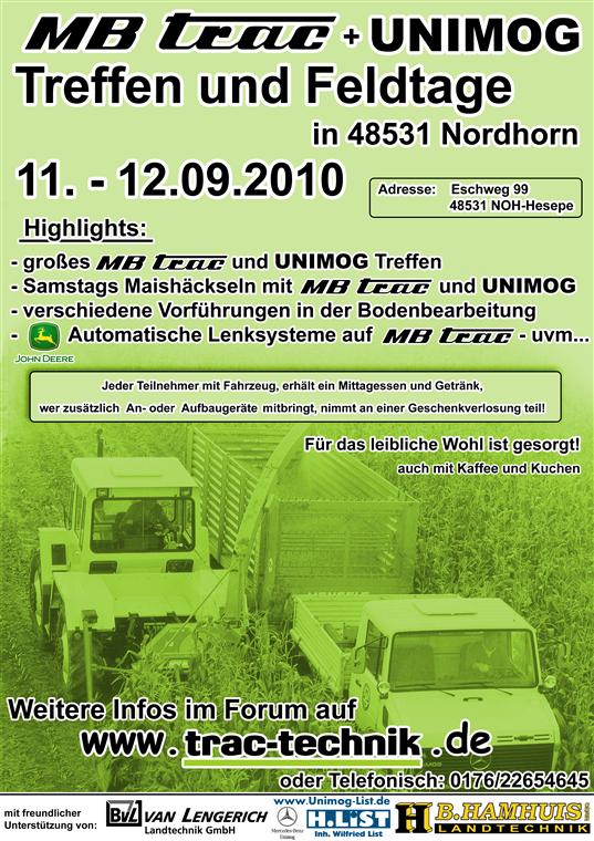 Große MB-trac und Unimog Feldtage mit Treffen am 11.-12.09.2010 in 48531 Nordhorn